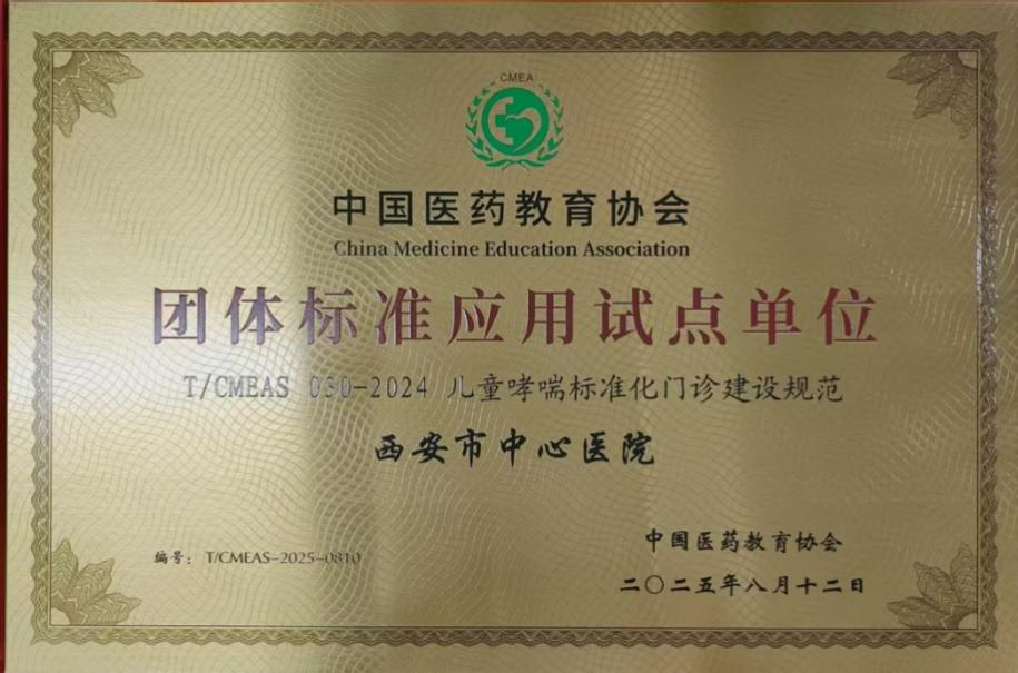 近日,西安市中心医院儿科正式获评由中国医药教育协会认证的T CMEAS 030-2024儿童哮喘标准化门诊建设规范&md...……