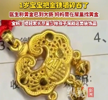 刘女士一岁五个月的儿子,竟然在夜里趁她不注意,把佩戴在身上的金首饰咬下来吃了。……