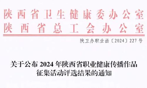 近期,由陕西省卫生健康委办公室和陕西省总工会办公室主办的2024年职业健康传播作品征集活动评选结果正式公布。……