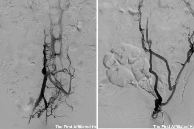 胡志副教授详细了解患者情况后,认为此病例罕见,静脉血栓经开放的卵圆孔栓塞于冠状动脉引起心肌梗死的可能性大,封堵卵圆孔可预防再次出现心、脑等重要脏器致命性栓塞,但由于患者既往存在下腔静脉狭窄伴血栓形成,需评估下腔静脉手术入路;同步下腔静脉造影显示左髂静脉及下腔静脉肝下段血栓形成,管腔狭窄、闭塞,奇静脉开放伴大量侧枝静脉回流建立。