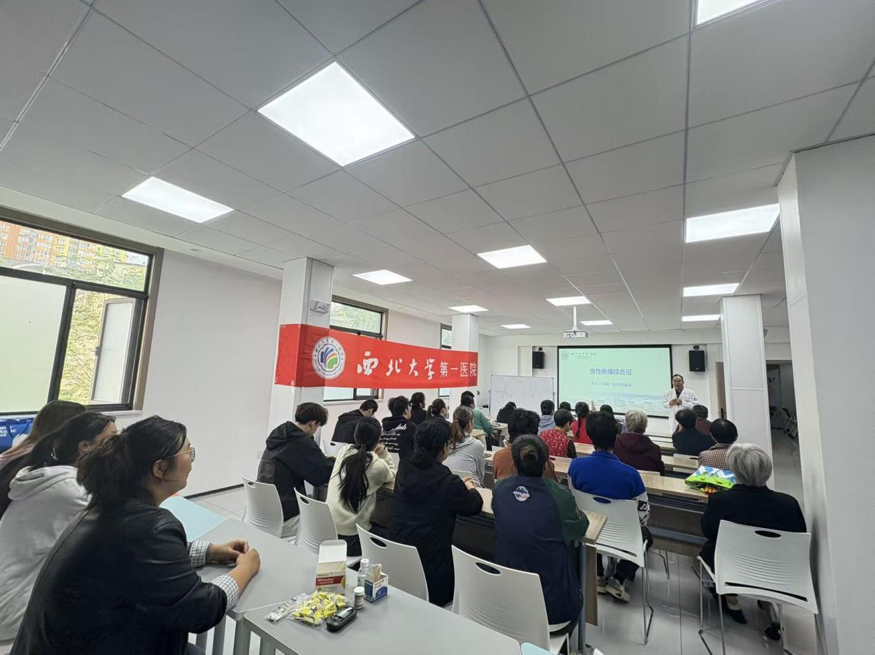9月25日上午9点,该院还将科普讲座搬进了韩森寨街道东盛社区。此次讲座由疼痛科主任医师白正发主讲,主题为“软组织损伤的诊断与治疗”。讲座中,白正发主任医师结合丰富的临床案例,详细讲解了软组织损伤的常见类型、病因、诊断方法以及科学的治疗与康复手段。他还现场解答了居民们提出的关于软组织损伤的各类疑问,指导大家在日常生活中如何预防软组织损伤,以及受伤后的正确处理方式。
