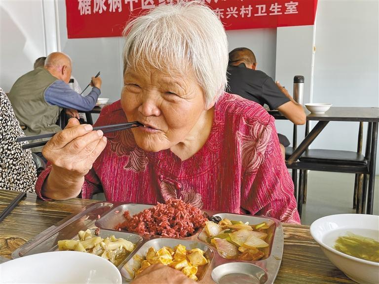 9月29日中午,西安市长安区引镇街道东兴村互助幸福院餐厅里弥漫着浓浓的饭菜香气。90岁的村民张凤莲夹起一筷子软糯的鱼香茄子送入口中,脸上漾开满足的笑容。