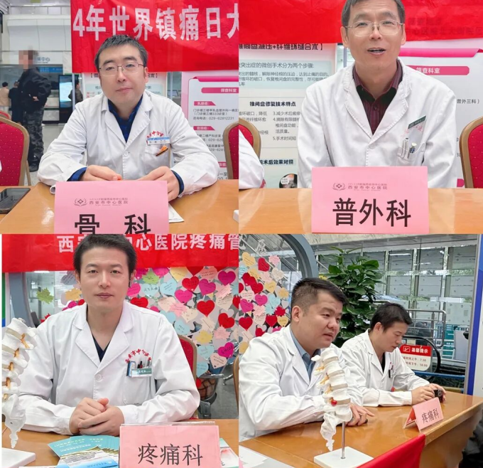为普及疼痛防治知识,提高公众对疼痛疾病的科学认知,10月17日上午,西安市中心医院疼痛科暨疼痛管理小组(骨科、肛肠科、肿瘤内科、神经内科、心胸外科、普外科、药剂科)等专家团队,在门诊大楼一楼大厅成功举办了“世界镇痛日”大型公益义诊活动。