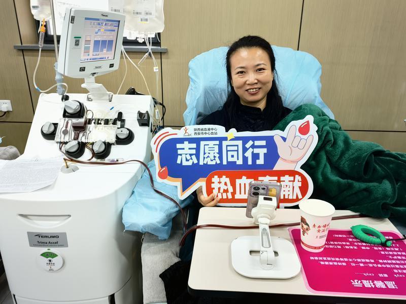 清晨的血站内,行动团成员们有序地进行健康问询和血液检测。常年参加马拉松的西安市劳模魏红艳这次没有出现在赛道上,而是完成了人生的第一次献血。她说:“能通过这种方式帮助他人、延续生命,比冲过终点线更有意义。”