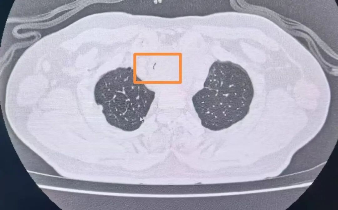 经复查胸部CT发现患者气管已经出现明显狭窄,内径最窄处直径不到2mm(正常成年男性气管内径为18-22mm),呈“一线天”样改变,整个气管仅靠一条细微的缝隙维持着少量的通气,意味着病人随时有发生窒息的危险。甲乳外科立即组织开展了多学科讨论。经过对病情的充分分析,呼吸与危重症医学科副主任陈晖建议紧急行气管内支架置入术解除大气道梗阻。