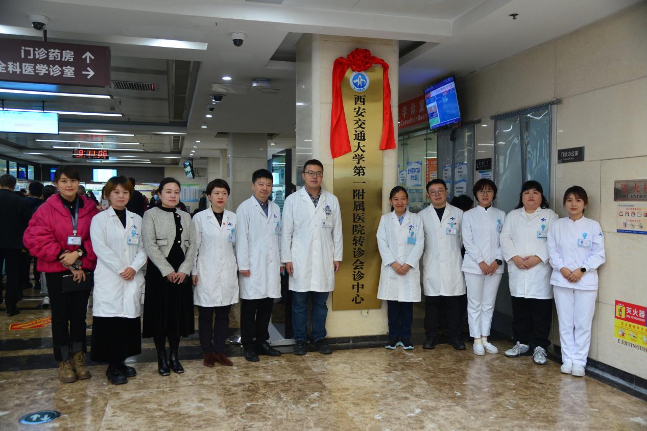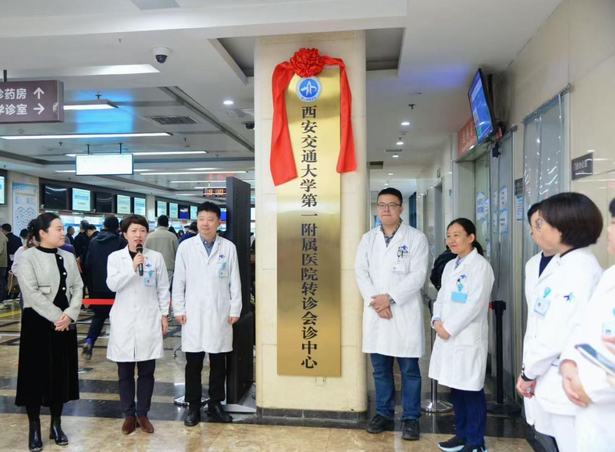 最后,由王铮、张玮、李杨、刘庆、胡婷婷共同为“西安交通大学第一附属医院转诊会诊中心”揭牌,标志着交大一附院转诊会诊中心经过前期的试运行之后正式开展工作,将为更多基层医疗机构的患者提供转诊、会诊服务,优化就诊流程,改善患者就医体验。