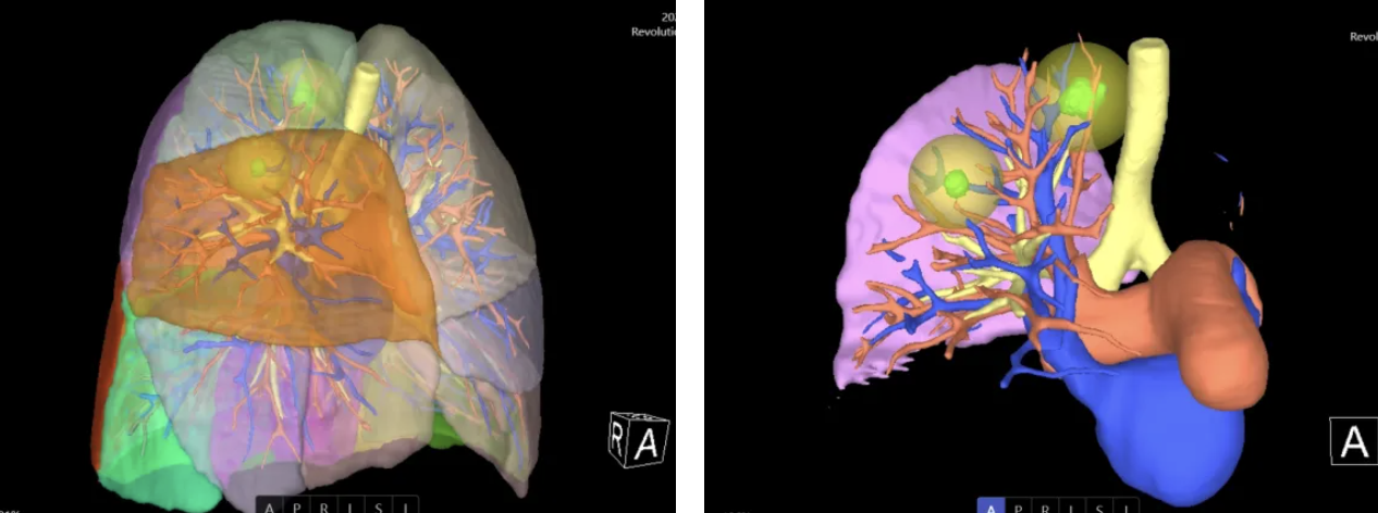 为了更清晰地了解结节的位置和周围情况,手术全程实时对照 3D - CTBA 三维重建图像。这就像给医生的眼睛装上了一副“透视镜”,又如同开车时使用高德地图实时导航,结节藏得多深、边界在哪里、周围有没有重要血管,全都一目了然。医生们可以根据这些信息,快速准确地找到病灶,避免损伤周围的健康组织。
