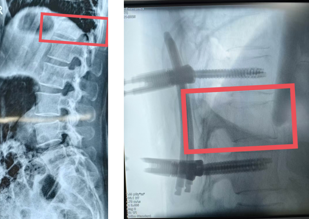 7天前,刘女士在家门口擦车时不慎滑倒,重重坐地,腰背部瞬间剧痛难忍,无法动弹。家人紧急将其送往当地医院,检查结果显示为胸12椎体压缩性骨折,这意味着第12胸椎被压扁。此后,刘女士生活被困在床上,翻身都成奢望,更无法下地行走,日常起居全依赖家人照料,曾经的独立与活力消失殆尽。