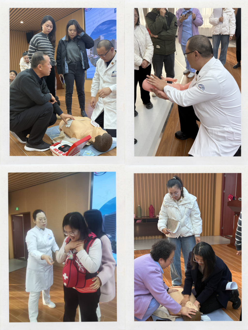 培训围绕心肺复苏(CPR)操作流程、成人及儿童气道异物梗阻处置方法、AED使用要领等核心内容展开。宣讲团队通过理论讲解、步骤分解、模拟演示相结合的方式,将专业急救知识转化为易懂可操作的实用技能。参训人员在专家的指导下,积极利用模拟教具进行实操演练,从手法按压到仪器使用,逐步掌握急救关键动作与决策流程。