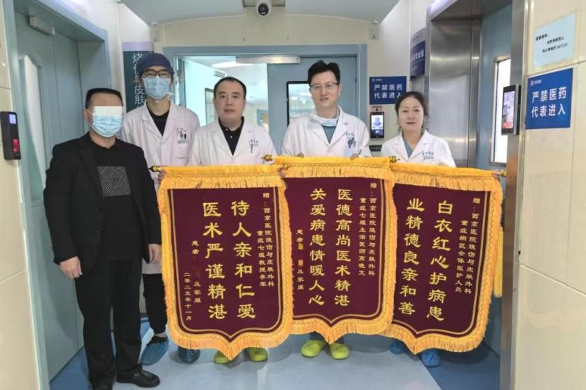 植皮手术成功并不意味着救治结束,后续护理同样困难重重。重度烧伤患者极易出现压疮、肺部感染等并发症,任何一点疏忽,都可能让之前努力前功尽弃。随即,护理团队开启24小时全程照护,每2小时为张大爷翻身一次,精准控制创面温、湿度,密切监测各项生命体征变化。正是这份“零差错”的极致护理,为创面修复赢得宝贵时间。最终,经过135天日夜坚守,张大爷痊愈出院。救治成功的背后,是西京医院多学科诊疗团队的硬核支撑,以及烧伤与皮肤外科救治团队的精心守护、通力协作的最好印证。