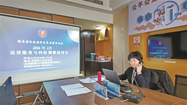“您别着急,慢慢说,我们一定帮您协调解决。”2月4日,在省福协法律服务与纠纷调解接待日现场,陕西省养老行业纠纷人民调解委员会主任、调解员刘小红一边轻声安抚,一边认真记录老人诉求。在她身旁,专职律师全程待命,随时为纠纷调解提供专业法律支撑。