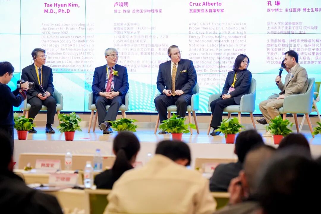 圆桌交流环节由消化病院执行院长韩国宏教授主持。韩国国立癌症中心质子中心金泰现教授、瓦里安亚太首席专家科鲁兹·阿尔贝托先生、上海市质子重离子医院孔琳教授、中国科学技术大学离子医学研究所所长卢晓明教授、乌兹别克斯坦国家医学中心医疗副院长佐伊罗维奇教授等中外专家,围绕质子治疗的国际经验、技术进展、临床应用与全球协作展开深入讨论。