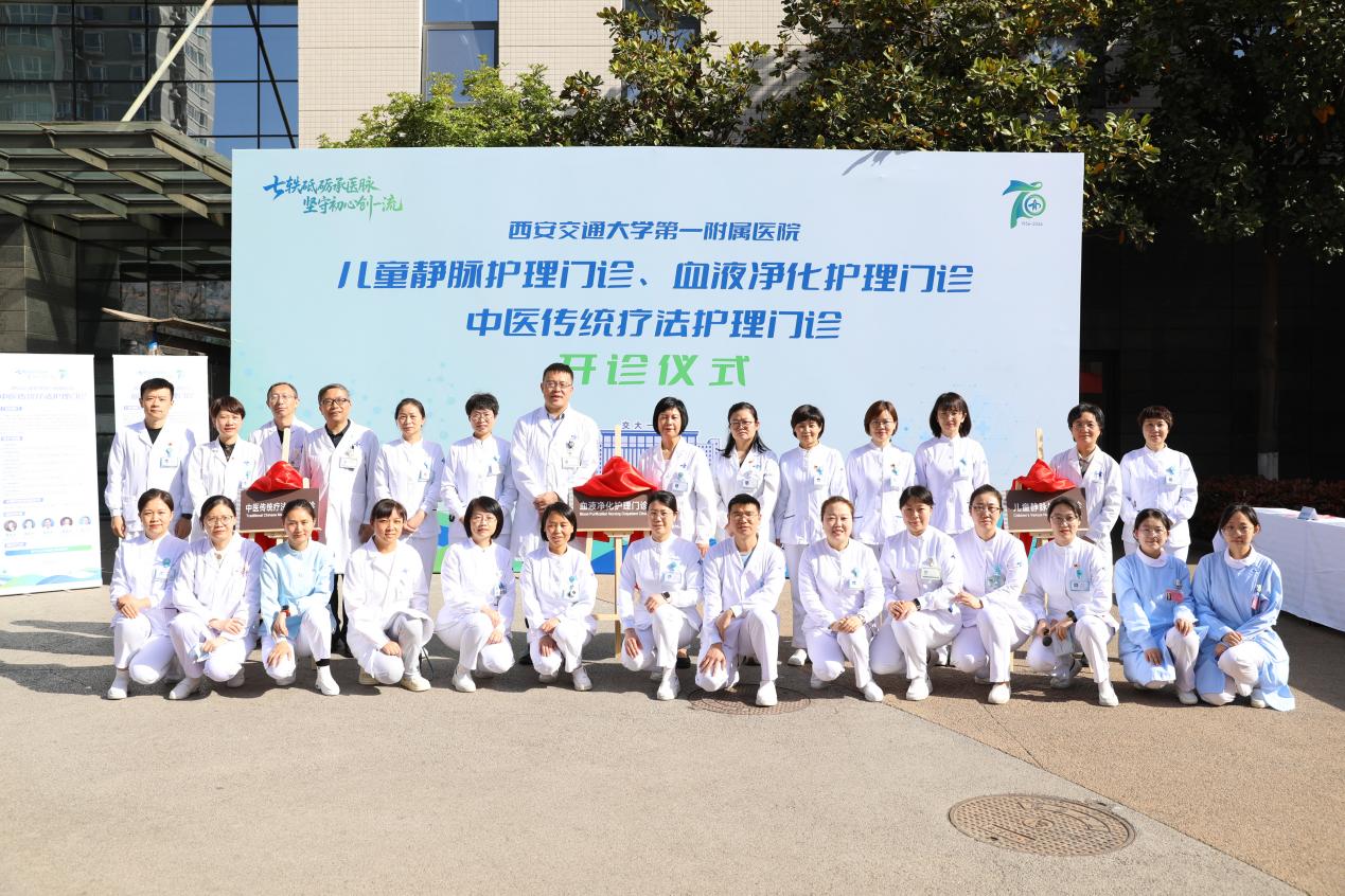 4月1日上午,西安交通大学第一附属医院儿童静脉治疗护理门诊、中医传统疗法护理门诊、血液净化护理门诊开诊仪式在门诊南广场顺利举行。仪式由护理部干事郎澜主持。医院院长助理、医务部部长王铮,医务部门诊部主任刘庆,重症肾脏病・血液净化科主任蒋红利,儿科主任周熙惠,中医科主任孙连庆,护理部主任李洁琼及各专科护理门诊负责人、三大专科护理门诊核心医护团队齐聚现场,共同见证医院护理学科高质量发展的重要里程碑。