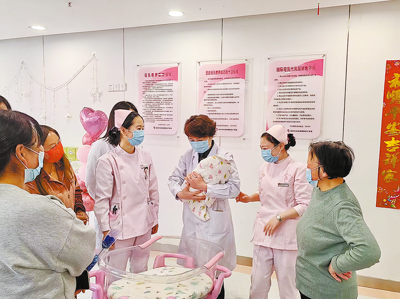 ▷产科医护人员为新生儿家属示范新生儿日常照护等实用技巧,细致解答家属疑问,以精细化服务提升群众就医体验。