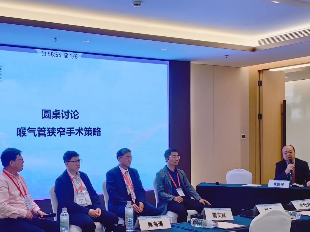 会议期间,崔鹏程院长受邀主持“喉气管狭窄手术策略”主题圆桌会议。崔院长围绕喉气管狭窄的治疗核心要点难点,结合临床典型病例,引导与会专家从术式选择、并发症处理、功能保全等多维度展开热烈讨论,其牵头梳理的诊疗思路为复杂气道狭窄的规范化治疗提供了宝贵参考,获得业内专家的高度认可。罗家胜副院长与霍美旭主治医师联合在大会上作“甲状腺外科气道相关问题处理策略”专题发言。霍美旭主治医师以壁报形式交流了《低温等离子刀治疗T1-T2期声门型喉癌的临床疗效及预后分析》研究成果。以上分享方案细致、措施可落地,引发现场同行的广泛关注和交流。